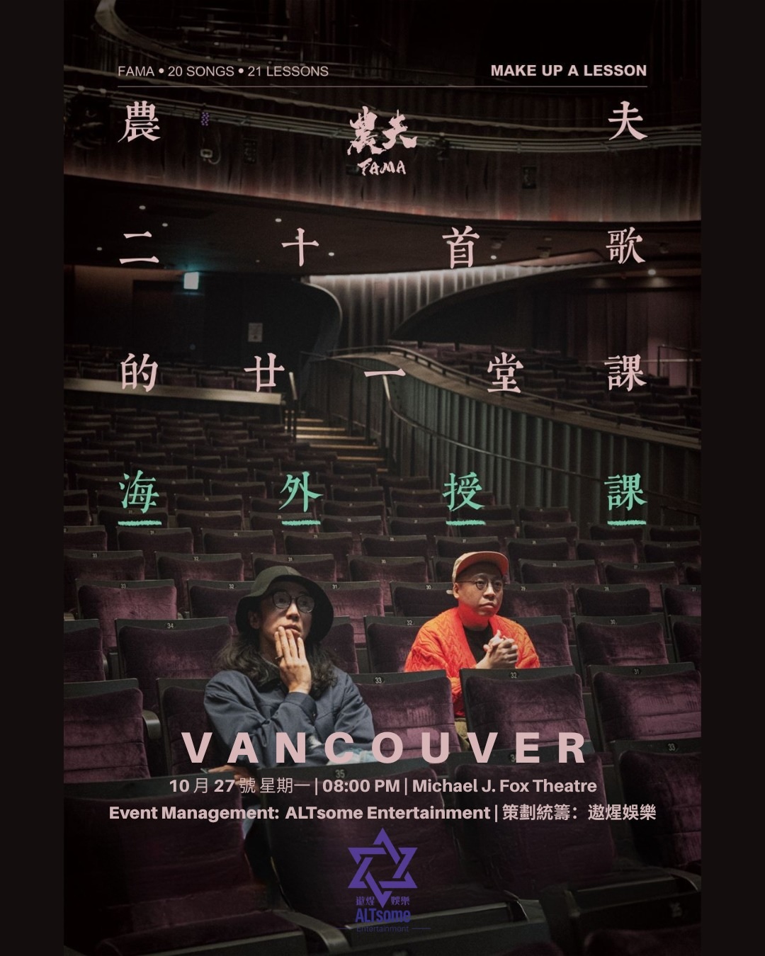 Altsome Entertainment 遨煋娛樂有限公司 presents FAMA 農夫【二十首歌的廿一堂課海外授課】21 Lessons from 20 Songs – Overseas Class