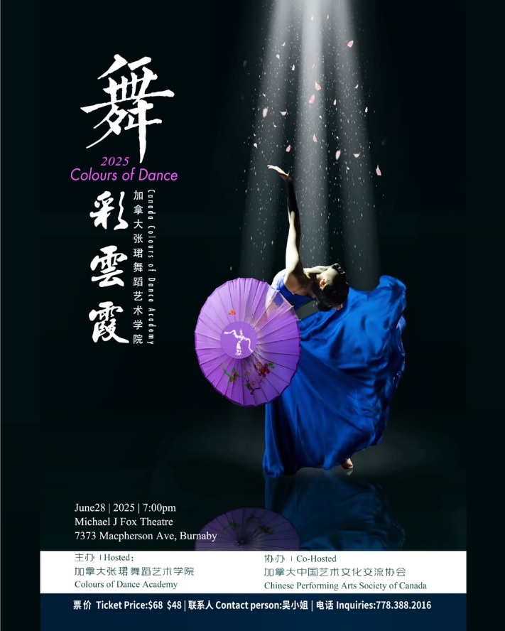 Colours of Dance Academy 张珺舞蹈艺术学院 presents 舞彩雲霞 Colours of Dance 2025 + Add to Google Calendar + iCal / Outlook export Date Jun 28 2025 Expired! Time 7:00 PM Category Public Organizer Colours of Dance Academy 張珺舞蹈藝術學院 Phone (778) 999-0252 or 604-323-2886 Email contactus@coloursofdance.ca Website https://coloursofdance.ca/ Next Event DARK Date Feb 02 - 05 2026 Time All Day Share this event