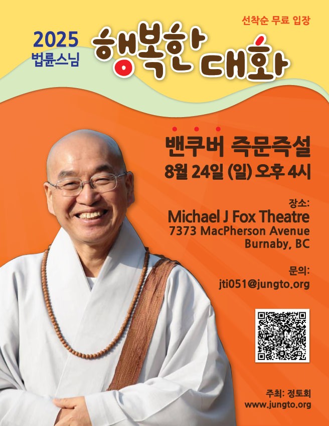 Jungto Buddhist Society 정토회 presents Casual Conversation with Ven. Pomnyun Sunim Free Admission + Add to Google Calendar + iCal / Outlook export Date Aug 24 2025 Expired! Time 4:00 PM Category Public Organizer Jungto Buddhist Society 정토회 Website https://jungto.org/ Next Event DARK Date Feb 02 - 05 2026 Time All Day Share this event