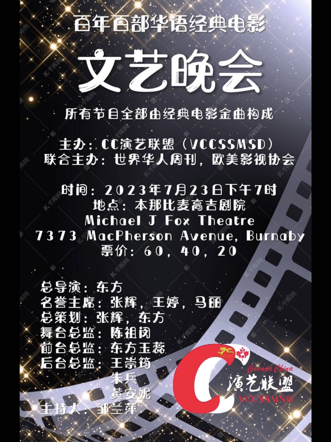 Vancouver Chinese Canadian Seniors Society of Multicultural Song & Dance presents CC演艺联盟 百年百部华语经典电影文艺晚会